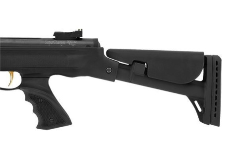 Wersja znakomitego pistoletu 25 SUPERCHARGER z dołączaną, kolbą z regulacją długości i wysokości baki policzkowej. Z uwagi na wysoką energię i zaskakująco komfortową kolbę ten pistolet może z powodzeniem konkurować z karabinkami pod względem celności i energii strzału. Dzięki mniejszym gabarytom i wadze niż karabinki jest łatwiejszy w przenoszeniu i nie wymaga siły podczas strzelania. Dlatego można go polecić zwłaszacza młodszym strzelcom oraz kobietom.