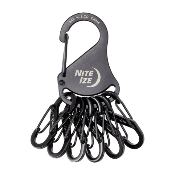 Brelok do kluczy Nite Ize S-Biner KeyRack wykonany ze stali nierdzewnej w zestawie z sześcioma karabinkami S-Biner #0,5, dzięki którym w zorganizowany sposób możemy przenosić i przechowywać klucze, pilot do bramy czy micro latarkę EDC.