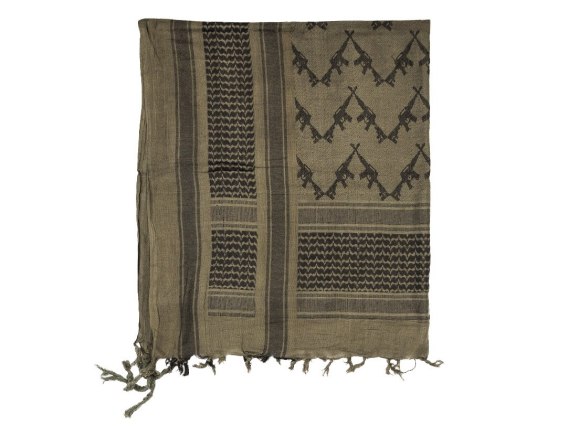Chusta ochronna arafatka Mil-Tec zielono-czarna z karabinami to wielofunkcyjne nakrycie głowy, doskonale znane każdemu miłośnikowi militariów, outdooru i strzelectwa.