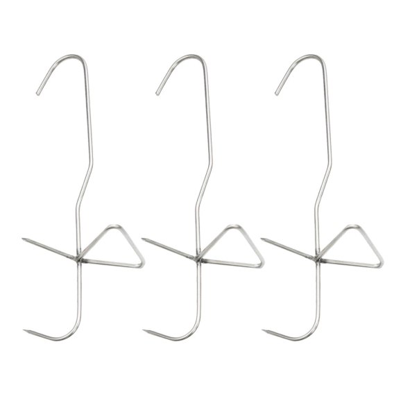Haki o długości 20 cm wykonano z trwałej stali kwasoodpornej, która nie przenosi smaków i zapachów oraz jest odporna na zużycie i korozję. Haki wędzarnicze Borniak typ 20 mają podwójne ostrza i rozpórki, które zapobiegają zamykaniu tusz ryb podczas wędzenia. Takie rozwiązania daje gwarancję, że ryby będą zawsze równomiernie uwędzone, z każdej strony. Haki wędzarnicze Borniak nie tylko ułatwiają wędzenie dorsza, makreli czy łososia, ale również pozwalają na wydajną organizację i oszczędność miejsca w wędzarni. W zestawie 3 haki.