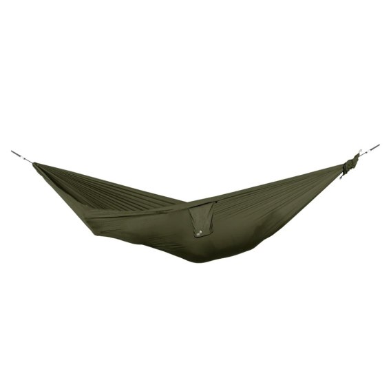 Hamak Ticket To The Moon w wersji jednoosobowej to lekki hamak turystyczny wykonany z szybkoschnącej tkaniny, zapewniającej wysoką wytrzymałość oraz komfort wypoczynku. Konstrukcja hamaku jest tak skonstruowana aby wytrzymywałaobciążenie aż do 200 kg. Do produkcji wykorzystano ultralekki nylon spadochronowy, materiał, który cechuje duża wytrzymałość mechaniczna, szybkoschnące właściwości, rozciągliwość oraz łatwość w czyszczeniu z zabrudzeń. Model zapewnia wygodny ikomfortowy wypoczynek dla jednej osoby i jest w kolorze zielonym.