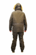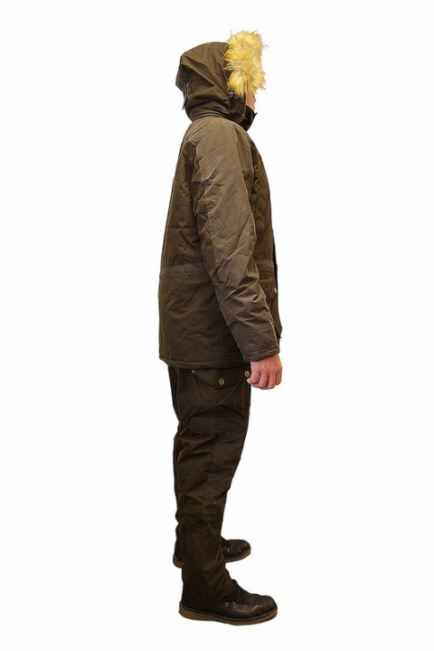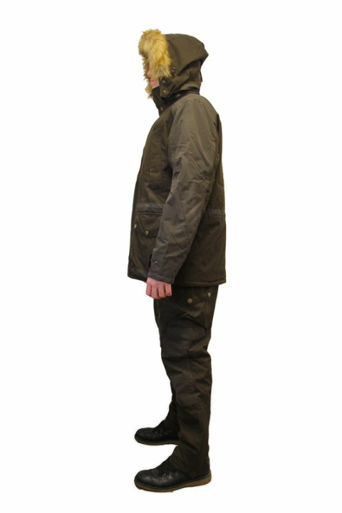 Dwuczęściowy kombinezon myśliwski Remington Men Shadow Brown jest lekki, ale też nie do zdarcia; wykonano go z tkaniny impregnowanej woskiem.