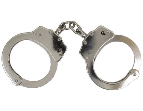 Solidne stalowe niklowane kajdanki z podwójnym łańcuszkiem oczkowym.