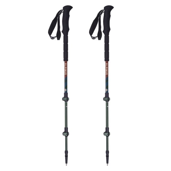 Kijki trekkingowe Alpinus Mattherhorn powstały z lekkiego i wytrzymałego aluminium 7075 w kolorze zielono-brązowym i należą do serii Tactical przeznaczonej dla średniozaawansowanych użytkowników. Kijki charakteryzują się ergonomiczną rączką z naturalnego korka oraz piankowymi wstawkami umiejscowionymi poniżej, dzięki czemu kijek można wygodnie złapać na trudnych podejściach, bez konieczności jego składania lub rozkładania.