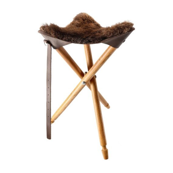 Stołki myśliwskie Acropolis – naturalne futro i drewno bukowe