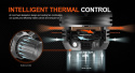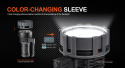 • Zmieniający kolor silikonowy rękaw monitoruje temperaturę latarki i chroni przed uszkodzeniami