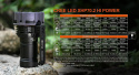 Turbo: 80,000lms~6800lms~900lms; 20 sekund + 70 minut + 8 minut; 1150 metrów; 330 625 cd;