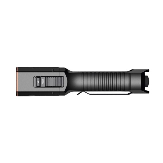 Dwa tylne włączniki połączone z przełącznikiem trybów pozwalają błyskawicznie uruchomić turbo, stroboskop lub światło czerwone bez zmiany chwytu czy pozycji dłoni. Mechanizm break-action skraca wymianę ogniw do minimum, a wskaźnik poziomu naładowania pomaga planować pracę, zanim pojawi się spadek jasności. Dzięki temu TK28R działa dokładnie tak, jak tego potrzebujesz – od pierwszej sekundy.