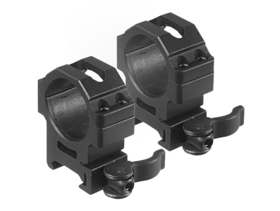 Montaż dwucześciowy średni 30/weaver amerykańskiej firmy Leapers z serii UTG wykonany z bardzo twardych a zarazem lekkich lotniczych stopów aluminium. Montaż został wyposażony w system szybkiego montażu i demontażu. Maksymalny rozmiar okularu lunety dla tego montażu to 60 mm.