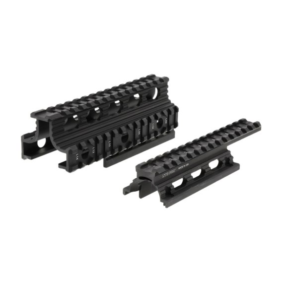 Łoże AK47 UTG PRO® ma cztery szyny Picatinny zgodne ze specyfikacją Mil-Spec, które zostały wyposażone w zintegrowane cztery gniazda QD dzięki, którym użytkownik ma możliwość mocowania zawieszenia taktycznego według własnych preferencji.