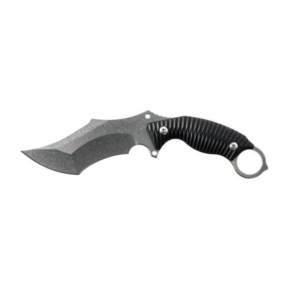 Ruike P181-B to nóż taktyczny typu karambit, wyposażony w stałą głownię ze stali nierdzewnej 14C28N, rękojeść z laminatu G10, charakterystyczny stalowy pierścień oraz polimerową pochewkę z klipsem 360°.