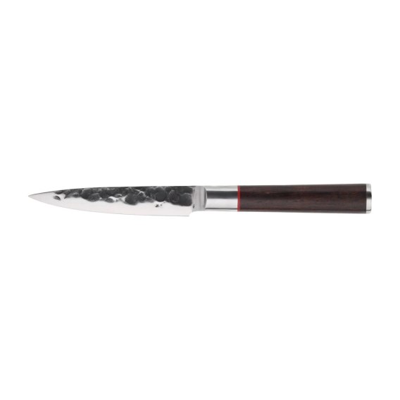 Forged Universal to nieco większy pobratymiec przeznaczonych do precyzyjnej pracy noży typu pairing, który dzięki nieco większym gabarytom sprawdzi się również podczas siekania. Nóż Universal marki Forged łączy w sobie wszelkie zalety tej formy z zastosowaniem japońskiej stali nierdzewnej zapewniającej dobre trzymanie ostrości połączone z niezwykle łatwym ostrzeniem i świetną odpornością na korozję. Konstrukcję dopełnia przyjemne wzornictwo łączące surową powierzchnię głowni z elegancką, drewnianą rękojeścią.