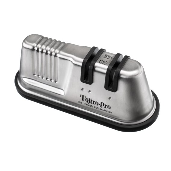Ostrzałka firmy Tojiro, polecana dla wszystkich rodzajów noży, z wyjątkiem tych o szlifach jednostronnych. Fabrycznie ustawione otwory ułatwiają naostrzenie noża pod odpowiednim kątem. Ponieważ rowek, w który wkłada się nóż, nie jest ustawiony równolegle do ceramicznego koła, jego kąt wypukły umożliwia nadanie nożowi pierwotnej ostrości. Gumowany i podstawa ma właściwości przeciwpoślizgowe.