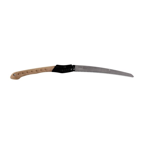 Piły outdoorowe są używane przez cały rok, także w okresie zimowym lub w warunkach o dużej wilgotności. Dlatego do budowy rękojeści zastosowano specjalne tworzywo Arbor. Laminat łączy cechy drewna i polimeru, dzięki czemupozostaje przyjemnie ciepły nawet w niskiej temperaturze, a jego szorstka faktura zapewnia pewny chwyt i dobrą kontrolę nad piłą. Bezpieczeństwo pracy zapewnia grzbietowa blokada, która zabezpiecza brzeszczot po rozłożeniu i złożeniu. Piła jest składana w taki sposób, że ostre zęby są całkowicie chowane w rękojeści. Pozwala to na jej bezpieczne przenoszenie w plecaku lub torbie myśliwskiej. W zestawie zasuwany pokrowiec z nylonu. Otwór w rękojeści daje możliwość zamocowania karabińczyka lub linki zabezpieczającej.