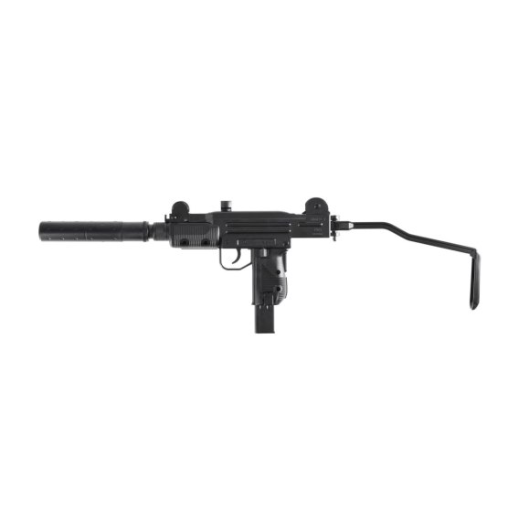 IWI Mini Uzi 4,5 mm BB CO2 to szybkostrzelna wiatrówka CO2 z systemem blow-back, składaną na bok kolbą oraz odłączanym tłumikiem dźwięku.