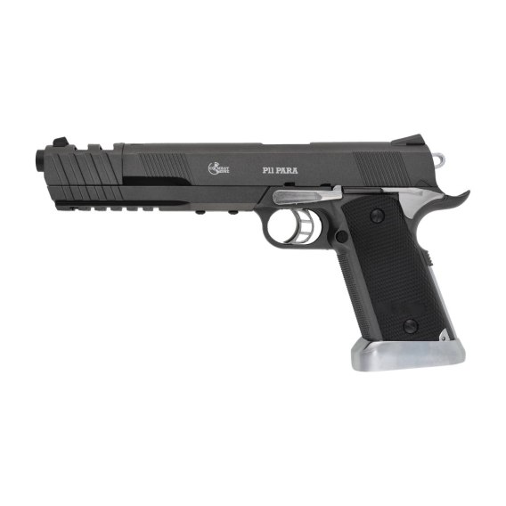Combat Zone P11 Para to replika wzorowana na sportowej wersji pistoletu Colt 1911, wyposażona w dodatki competition m.in. kompensator, kurek i spust o szkieletowej konstrukcji oraz sportowy lejek.