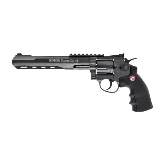 Ruger Superhawk z lufą 8" to replika rewolweru ASG w kalibrze 6 mm BB. Jest w pełni licencjonowanym modelem bazującym na palnej wersji amerykańskiej firmy Ruger Sturm. Model wykonany jest w całości z metalu, tylko w nielicznych miejscach uzupełniając o elementy z tworzywa. Cechą charakterystyczną rewolweru jest ładowanie poprzez wianuszek o pojemności 8 kulek. Za zasilanie odpowiada kapsuła CO2 o pojemności 12 gramów, umieszczana w rękojeści repliki. Prezentowana wersja jest w kolorze czarnym.