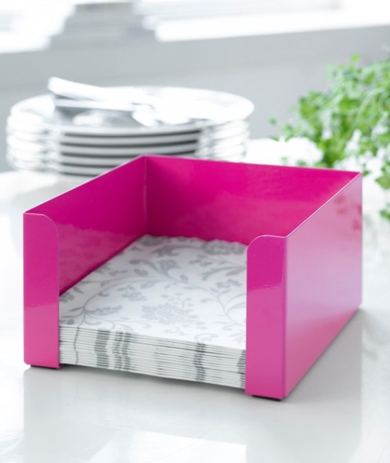 Metalowy serwetnik o wymiarach (dł/szer/wys): 17/17/8,5cm.