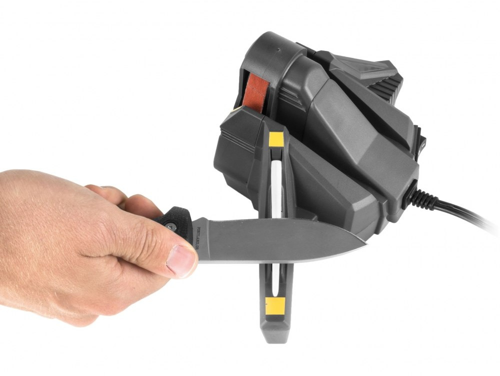 Solidna budowa oraz teksturowany chwyt zapewniają trwałość i wygodę użytkowania. Obsługa ostrzałki została uproszczona do maksimum. Urządzenie oferuje wyłącznie jeden kąt ostrzenia (25° na stronę) silnik ma stałą prędkość obrotów (co chroni przed przypadkowym uszkodzeniem ostrza), do włączania i wyłączania służy jeden przycisk.