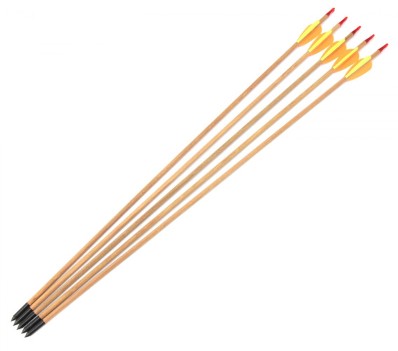 Komplet pięciu strzał drewnianych z ostrym grotem 29 cali.