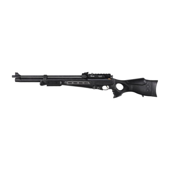 Karabinek jest zasilany sprężonym powietrzem magazynowanym w podlufowym kartuszu o pojemności 255 cc. Wbudowany manometr ułatwia odczyt ciśnienia i kontrolę zapasu powietrza. Przeładowanie 10 strzałowego magazynka odbywa się za pomocą tylnej dźwigni ma wzór zamka ślizgowo-obrotowego broni palnej.