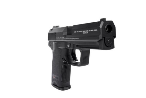 Wiatrówka H&K USP ma pełnowymiarowy magazynek mocowany w rękojeści, w którym mieści się zawór i kapsuła CO2 oraz podajnik na 22 okrągłych stalowych śrucin.