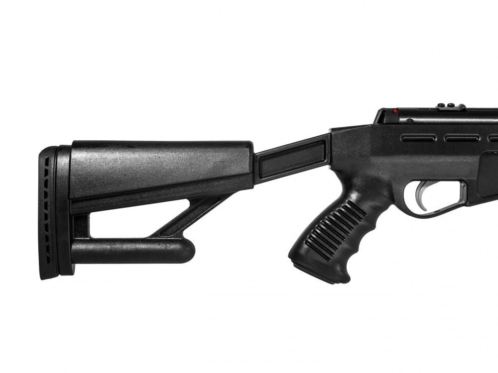 Hatsan AirTact QE to nowoczesny karabinek pneumatyczny, nawiązujący swoją stylistyką do broni bojowej.