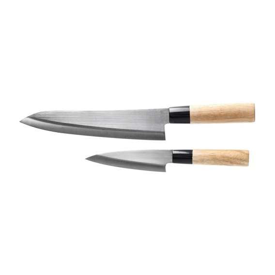 Zestaw 2 noży Satake Megumi Szefa kuchni / nóż uniwersalny to komplet japońskich noży kuchennych zapakowanych w eleganckie drewniane pudełko, dzięki czemu stanowią idealny pomysł na prezent dla każdego pasjonata gotowania.