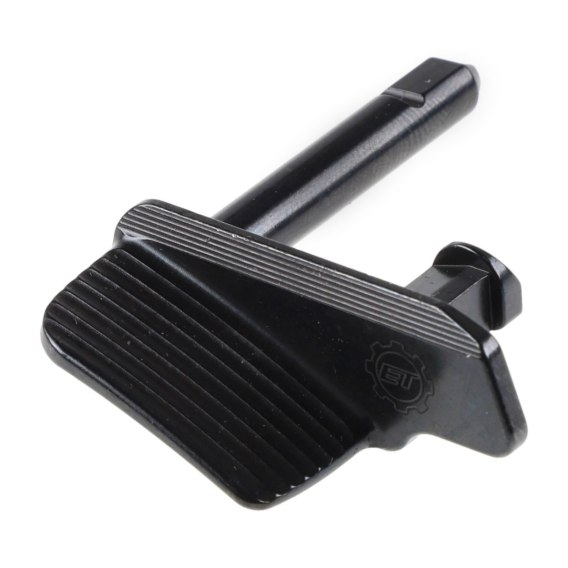 Zrzut zamka z półką pod kciuk Eemann Tech poprawia ułożenie ręki, co przekłada się na naturalniejsze prowadzenie broni i lepszą kontrolę odrzutu bez ingerencji w konstrukcję pistoletu. Specjalne ząbki utrzymują kciuk na miejscu, a wydłużony pręt ułatwia szybkie wyjęcie zrzutu zamka. Efekt? Mniej korekt po wystrzale, szybsze ponowne namierzenie i większa pewność podczas serii — idealne dla zawodników IPSC oraz entuzjastów szybkiego, precyzyjnego strzelania.
